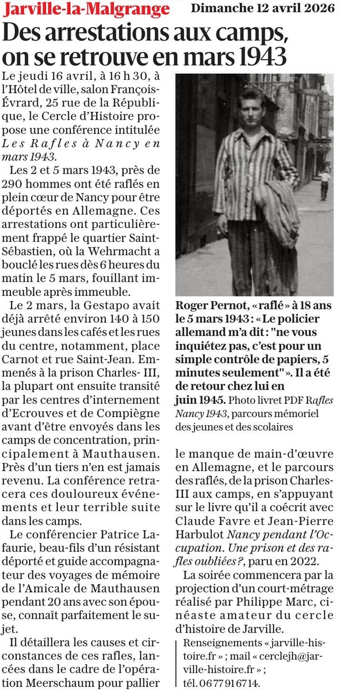 Annonce de la conférence du 16 avril 2026 sur les rafles de 1943 à Nancy
