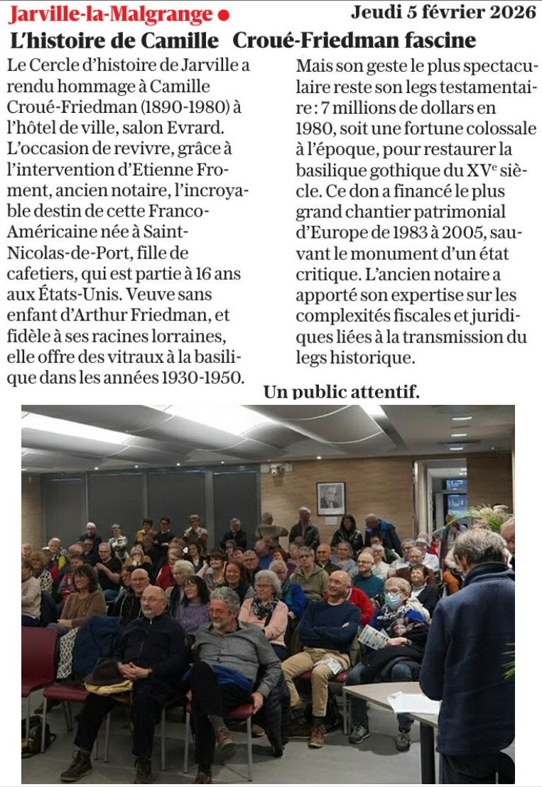 Conférence du jeudi 15 janvier 2026 :<br><br>La basilique de Saint-Nicolas-de-Port sauvée par Camille Croué-Friedman.